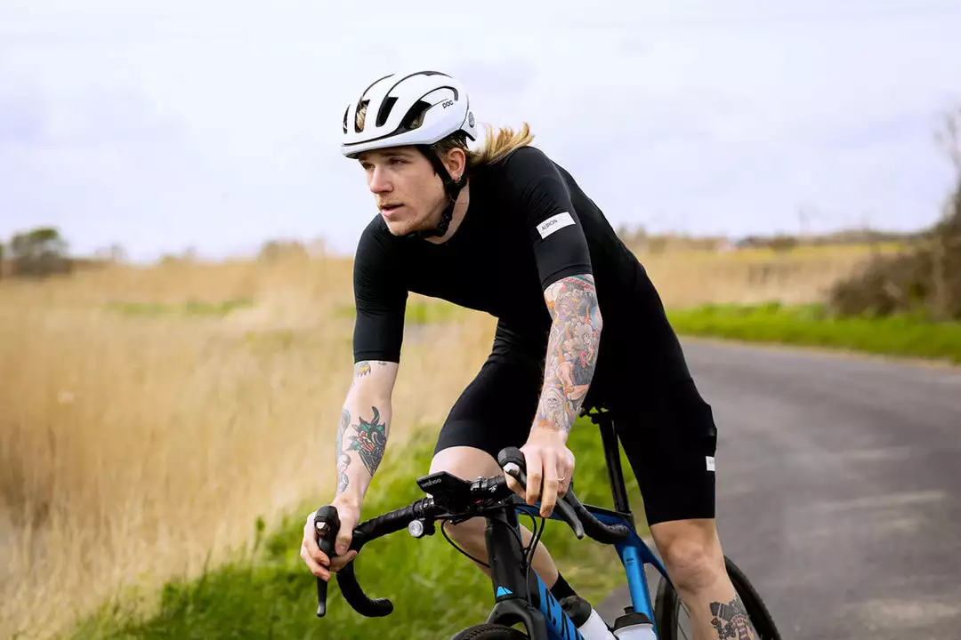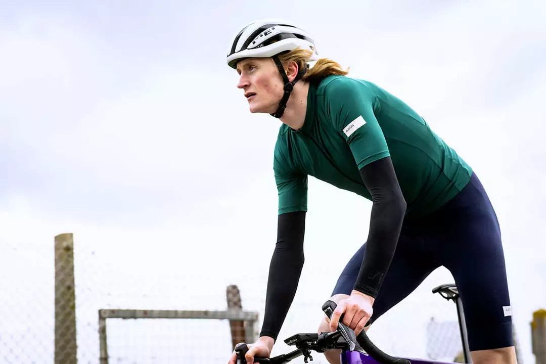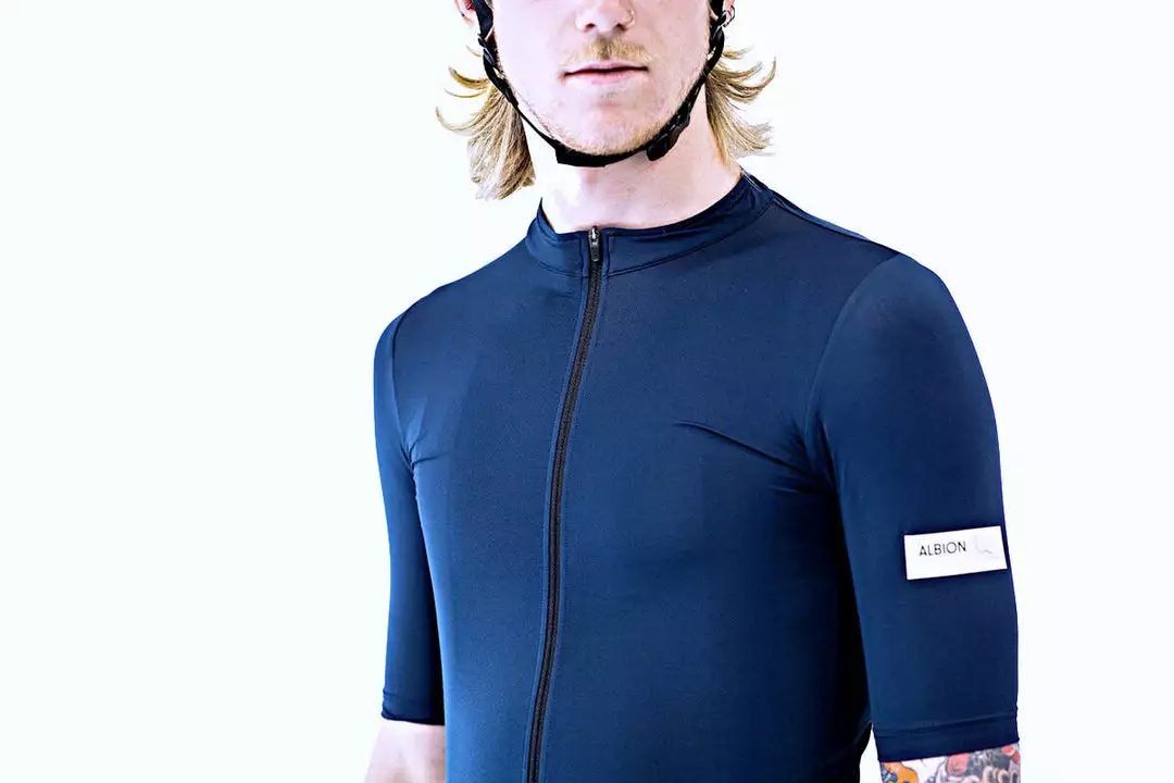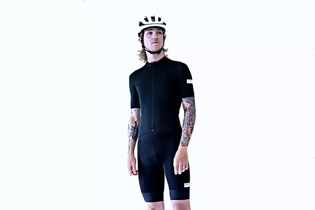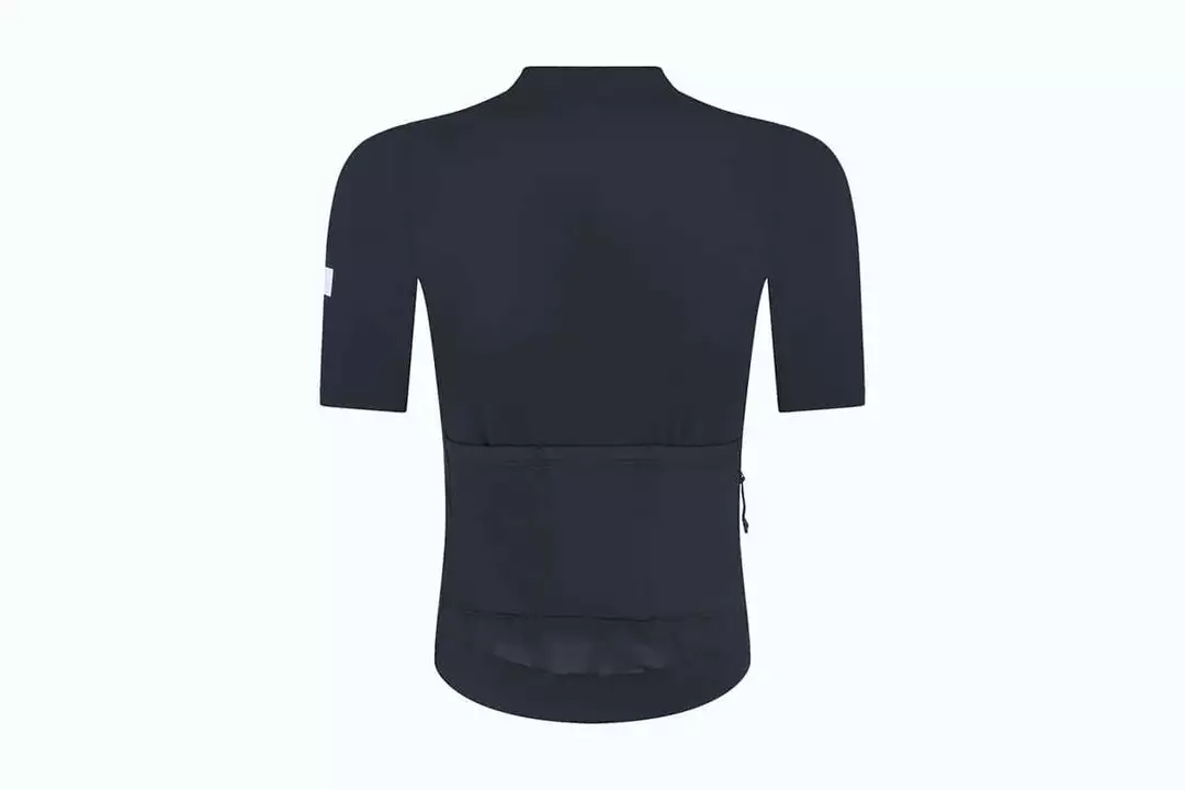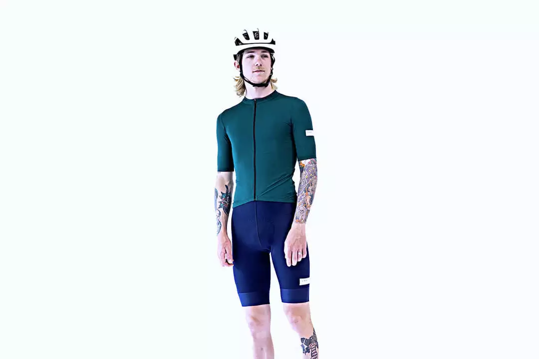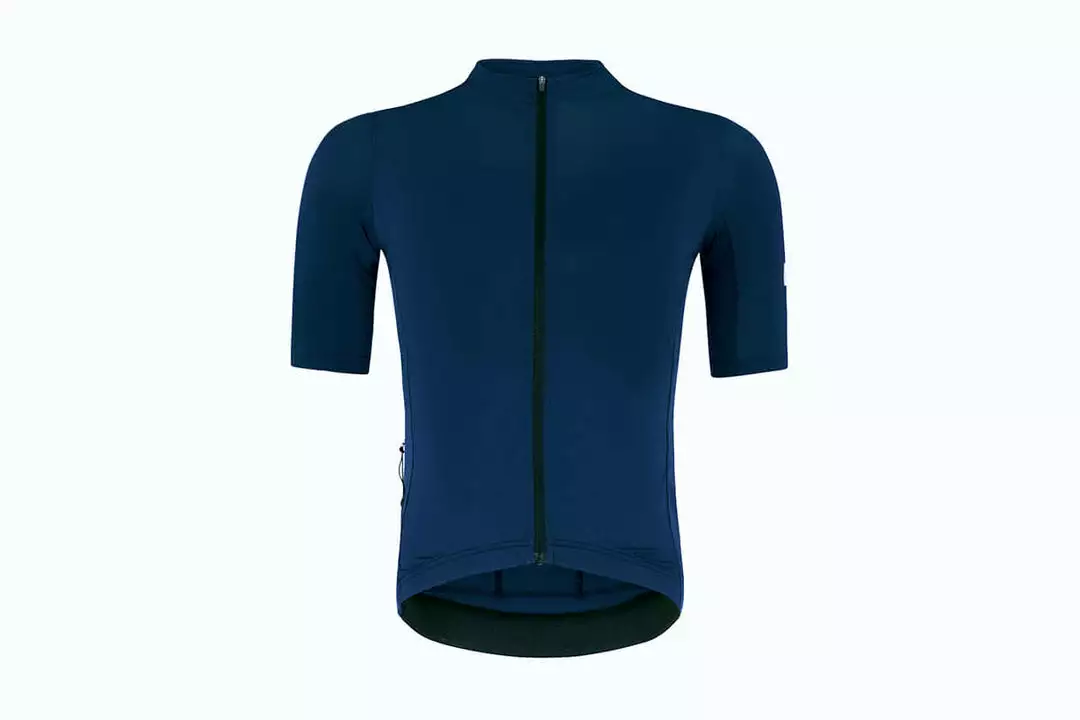 Lightweight short sleeve cycling jersey made using a high stretch, breathable, moisture wicking fabric for riding in warm weather conditions.