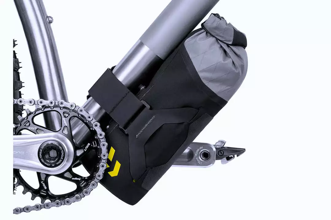 Downtube bags for bikepacking bring the benefits of accessory mounts, with the freedom to mount the bag wherever it is needed. The single motion velcro attachment and stability system means the pack mounts securely and easily to tubes of varying diameters. The waterproof, seam-welded construction ensures the contents remain clean and dry.