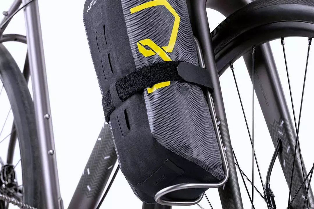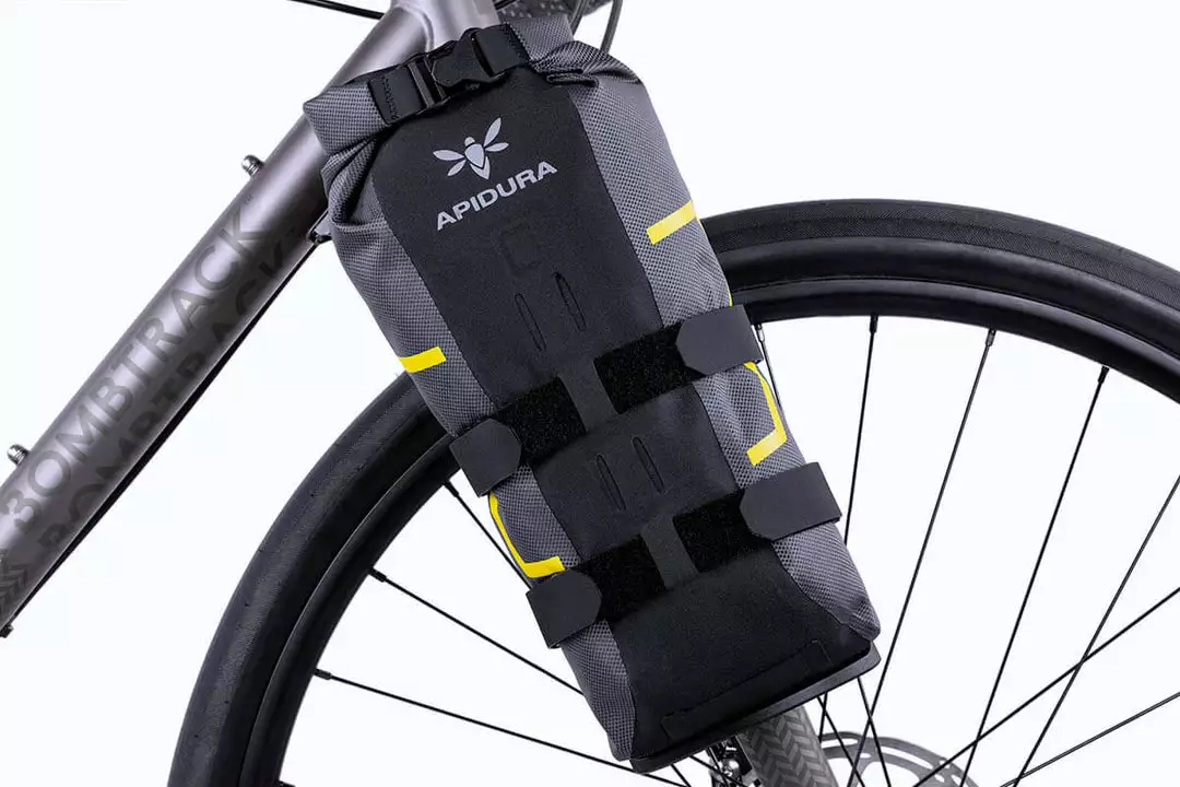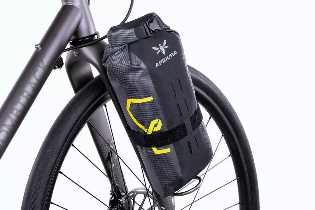 The attachment mechanism, unique to Apidura, ensures that the straps do not wrap around the fork itself. This makes removal and attachment far easier, and allows for access to contents without removal. Multiple attachment loops and the ability to cut down straps ensures that the Pack can be fitted to any fork cage (not included).