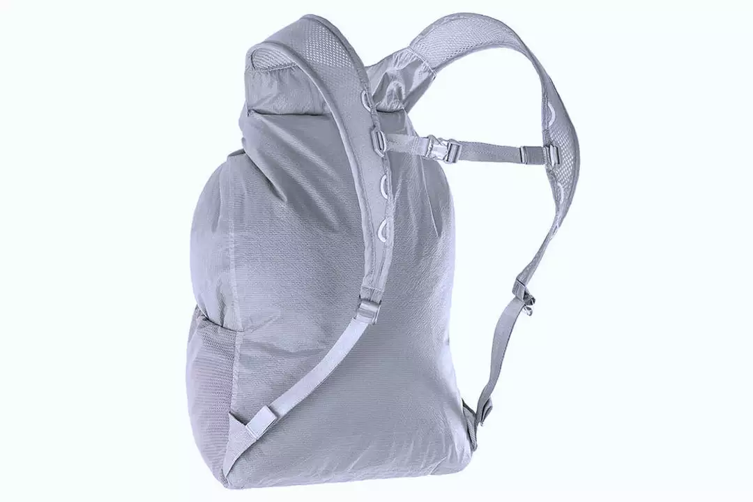 The Packable Backpack is unisex and one-size-fits-all, with adjustable sternum straps. A roll-top closure allows the bag to accommodate loads of varying sizes and the rear of the pack features reflective details for enhanced visibility at night.
