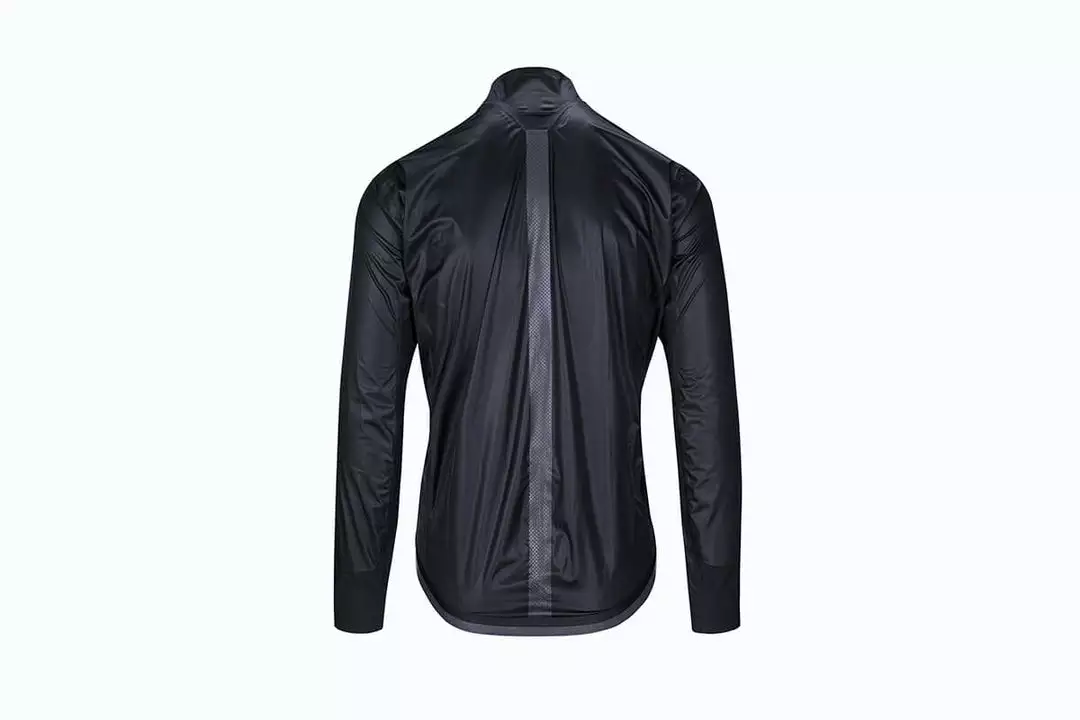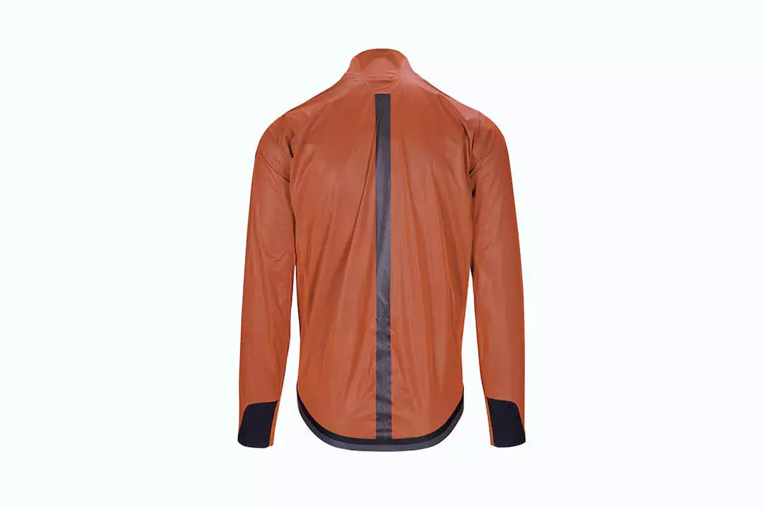 The TARGA stands in as the third iteration of our flagship EQUIPE RS Rain Jacket, returning with a more durable black membrane sandwiched in the middle of the 3L Schloss Tex material. In addition to being a touch more watertight, it also adds increased durability to this ASSOS-exclusive ultrathin softshell. We also removed the rear pocket slots, as the contents of your pockets are easily reached by unzipping the double-slider zipper from the bottom. This, in conjunction with the new stitchless reflective strip down the center of the back, ensures there are no points of water ingress along the back.