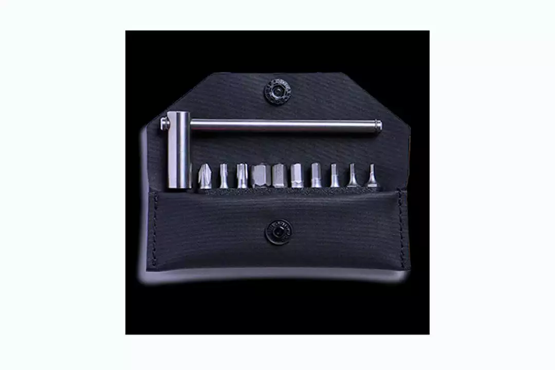 A minimalist titanium tool designed to keep close in your jersey pocket. Ready to use without initiating a search and rescue procedure just to dig it out of your saddle bag. Equipped with 10 swappable, chrome-coated S2 steel bits.