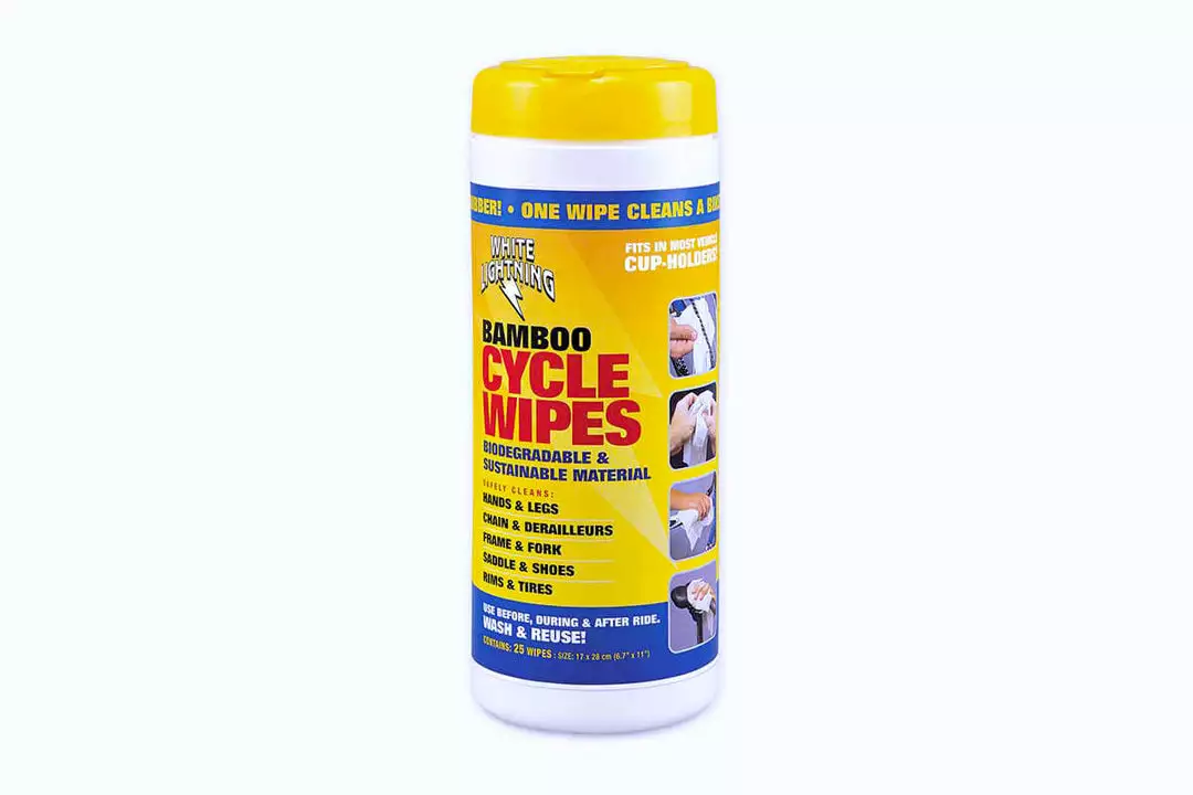 100% bamboo wipes treated with a secret solution that is strong enough to clean a bicycle chain, yet safe enough to clean a cyclist’s hands after a roadside repair or muddy legs before the long car ride home.