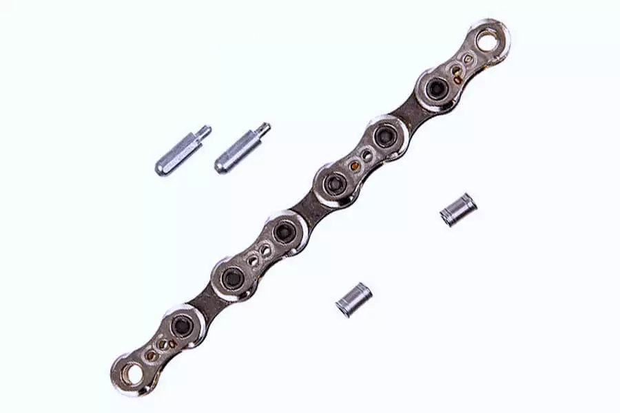 A section of chain with two joining links. It boasts the HD-Link system which protects you from any risk of the chain not keeping traction at the closure point. With 5.9mm special steel links for enhanced durability, the chains also has NI-PTFE anti-friction treatment to reduce friction and allow for smoother, quieter and more efficient pedalling.