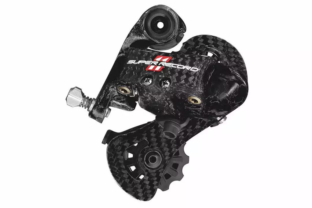 The masterpiece of the 2011 Campagnolo model range! Speed precision smoothness and better looks: the first rear derailleur with carbon fiber upper and lower body will amaze even the most demanding of cyclists. Lower and upper bodies outer plateparallelogram: all carbon-made components. The white ’11’ on the red rectangle printed on the carbon fiber gives the Super Record 2011 version a more aggressive and unique style.