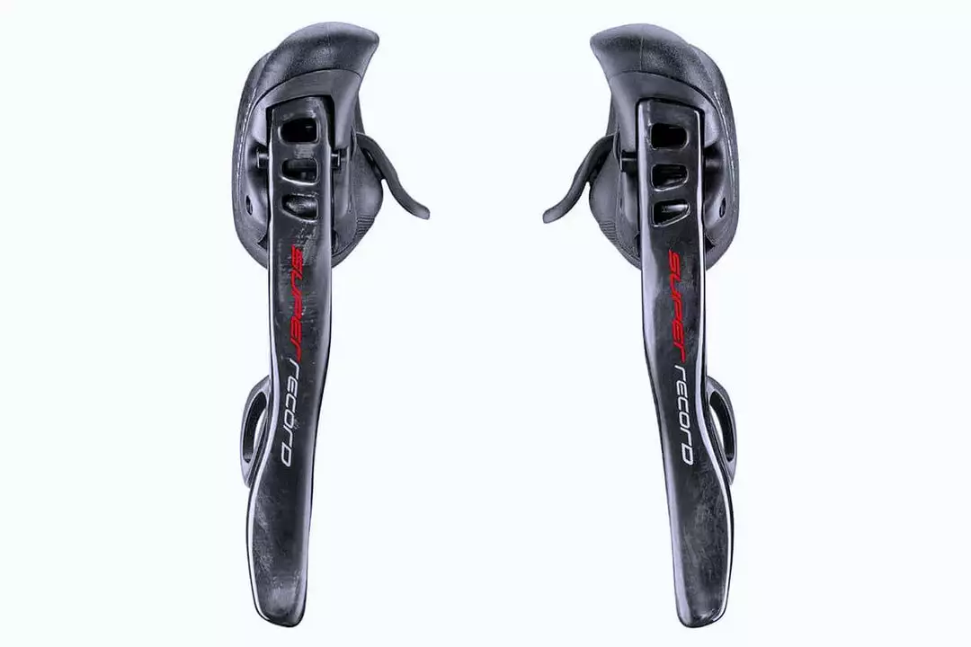 Campagnolo’s top of the range Super Record EPS 12-Speed Ergopower Levers use an intuitive one lever-one action design that prevents miss-shifts and can even be operated whilst wearing large gloves and from any hand position. The reach of the brake levers can be adjusted for any hand size, and the hoods themselves were shaped following countless hours of study into hand shapes to provide the most comfortable grip possible.