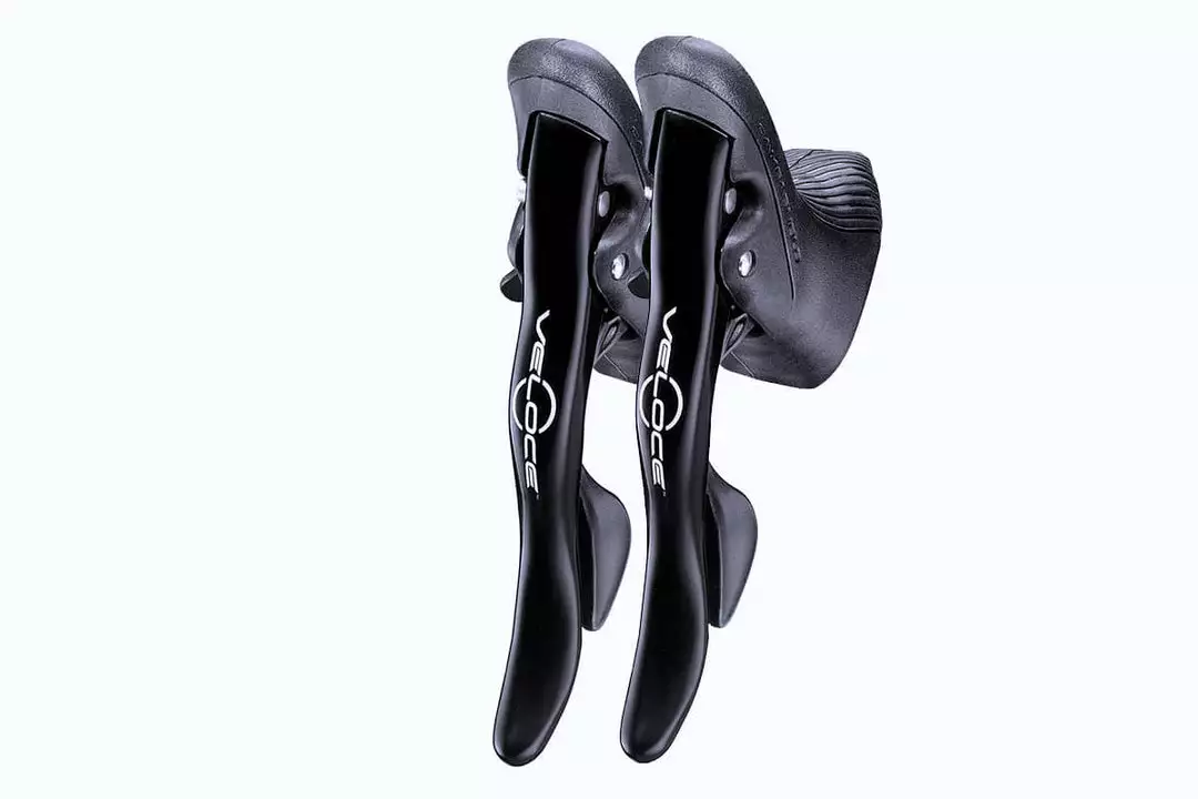 The Campagnolo Veloce group marks the entry into the Campagnolo world. The shape and design of the Veloce Ergopower brake/shift lever combination comes from Campagnolo’s top flight groupsets without the price tag.