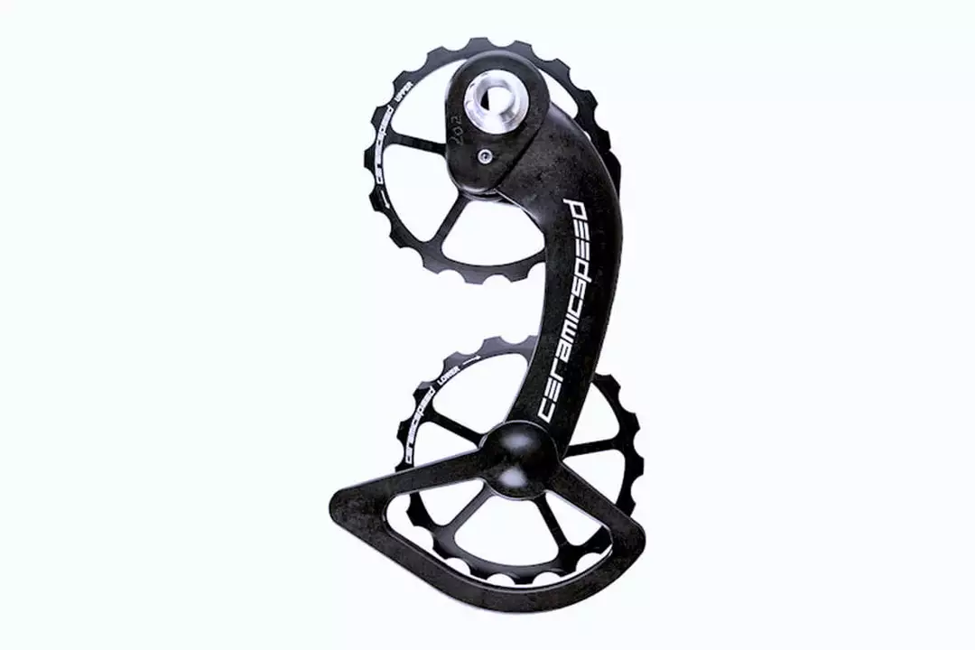The upper and lower 17-tooth oversized aluminium pulley wheels come fitted with either standard or coated CeramicSpeed Bearings.