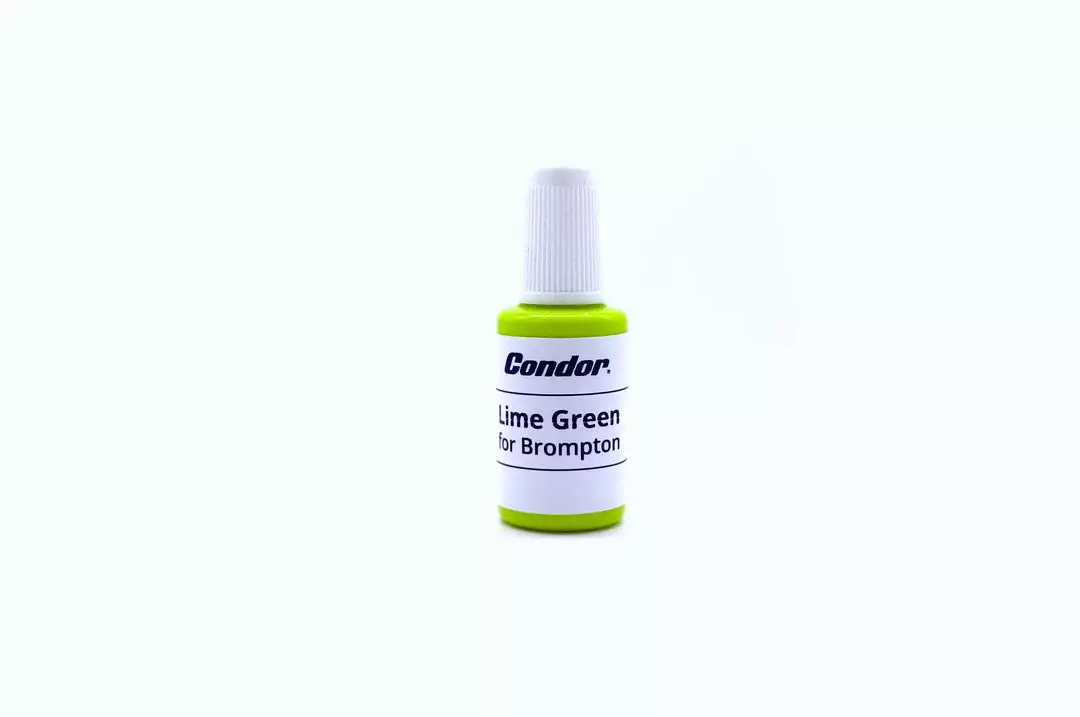 Condor Touch Up Paint for Brompton has been specially formulated for Brompton colours. Featuring an integrated brush, it is easy to repair chipped or scuffed paint. Our touch up paint can be applied without a primer and dries in 2 hours.