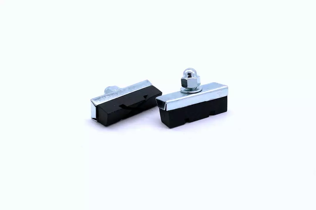 Replacement 35mm brake blocks with an x-pattern for use with vintage and older style bicycles.