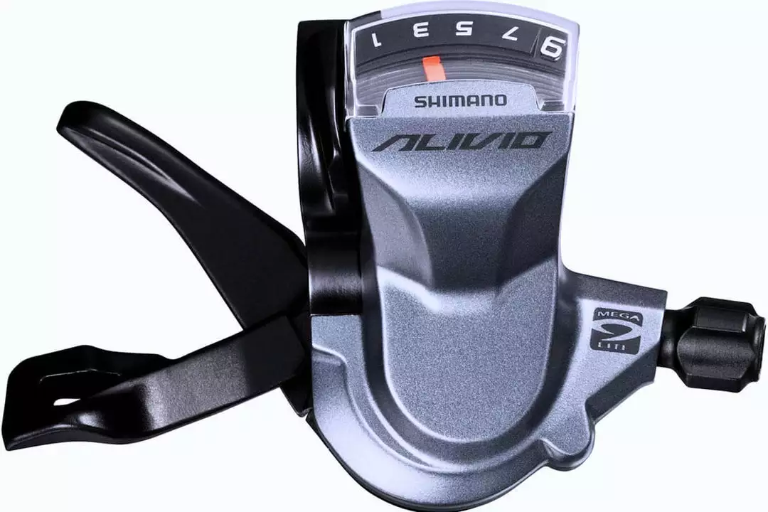 Great value Alivio 9-speed mountain bike Rapidfire lever for crisp gear shifting.