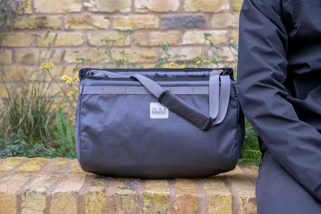 The plastic handle has been replaced with a tactile rubberised webbing handle, which means this bag is compatible with all Brompton handlebar types.