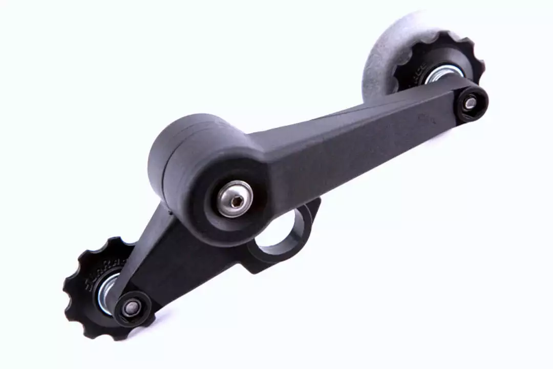 The Brompton Chain Tensioner Assembly is a genuine Brompton spare part.The Brompton chain tensioner is one of the “essential” list of spare parts for Bromptons with a single rear sprochet and performs an important role in keeping the chain taut whether the bike is being ridden or in the folded/parked position. This chain tensioner is for internally geared hubs where only one single rear cog / sprocket is fitted (1-speed, 3-speed or the older 5-speed).