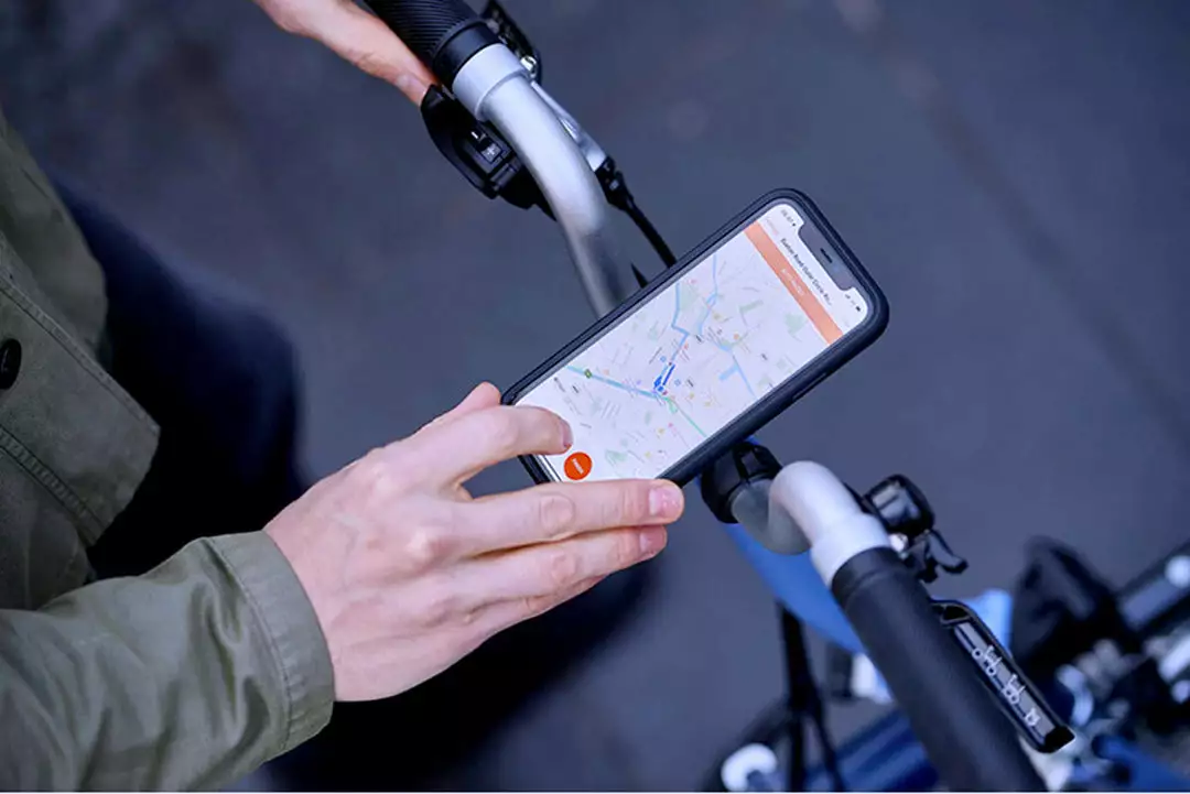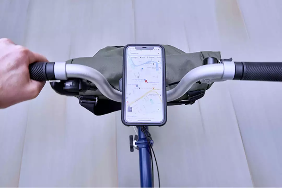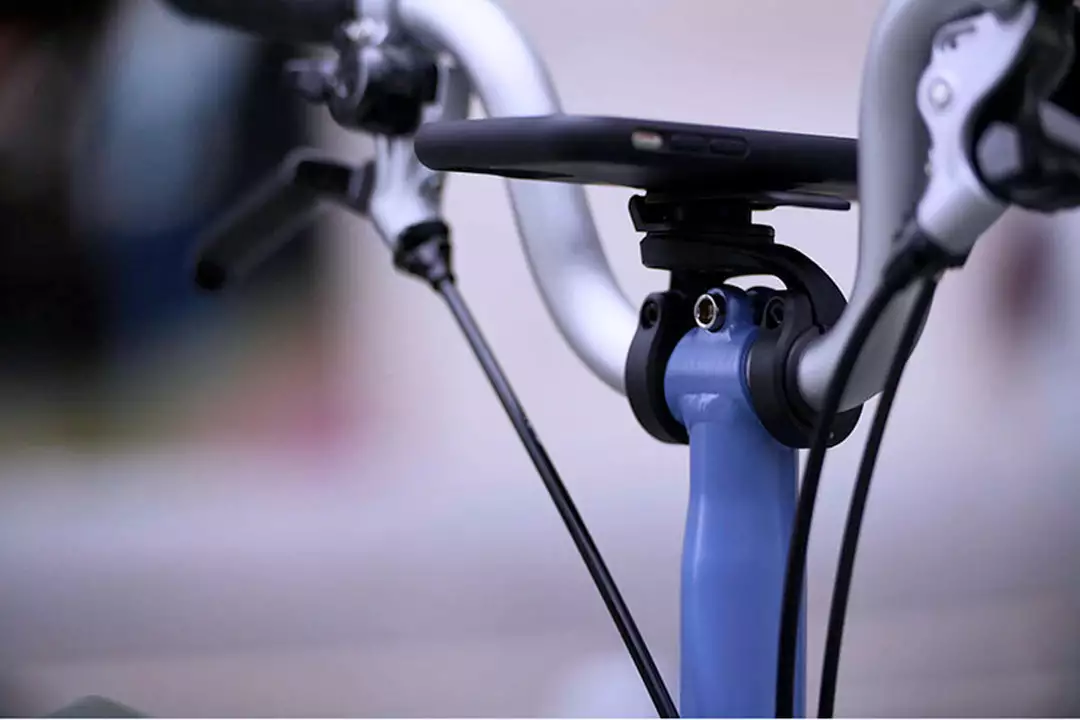 The Brompton Quad Lock® Phone Mount is a Brompton designed, fully custom phone mount for Brompton bikes, providing a stable and safe way to mount your phone to your bike allowing for navigation and notifications to be clearly visible whilst on the move.