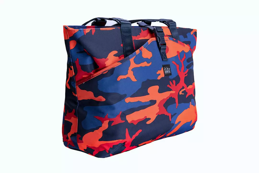 Inspired by the joy of riding through cities and the collective of individuals that make each one unique, the standout DISRUPT print plays on a design originally created to blend in. Made to stand up to daily use on and off your Brompton bike, the DISRUPT Borough Tote bag is constructed using sustainable 900D Polyester fabric from REPREVE®. A sustainable woven material made from certified post-consumer waste. There are more than twenty plastic bottles recycled into every bag. Inside is lined with a pop-colour orange nylon fabric. Created with all the organisational features you need to make packing and finding your belongings easy, the tote bag is fitted with multiple pockets inside and out—functional, flexible, and uniquely Brompton.
