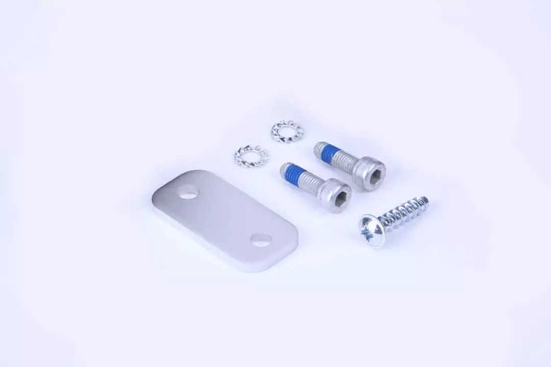 Replacement fixings only for the Brompton Front Carrier Block. Includes plate, screws and washers.