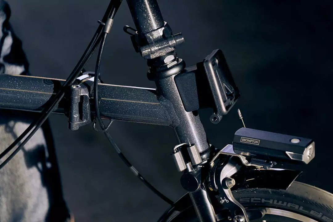 Our Brompton P Line bikes are fitted with front carrier block, reflectors, mudguards and Continental Contact Urban tyres