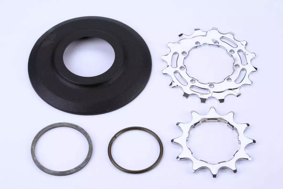 Genuine Brompton sprocket set including chain guide disc for 2-speed hubs (9-spline).