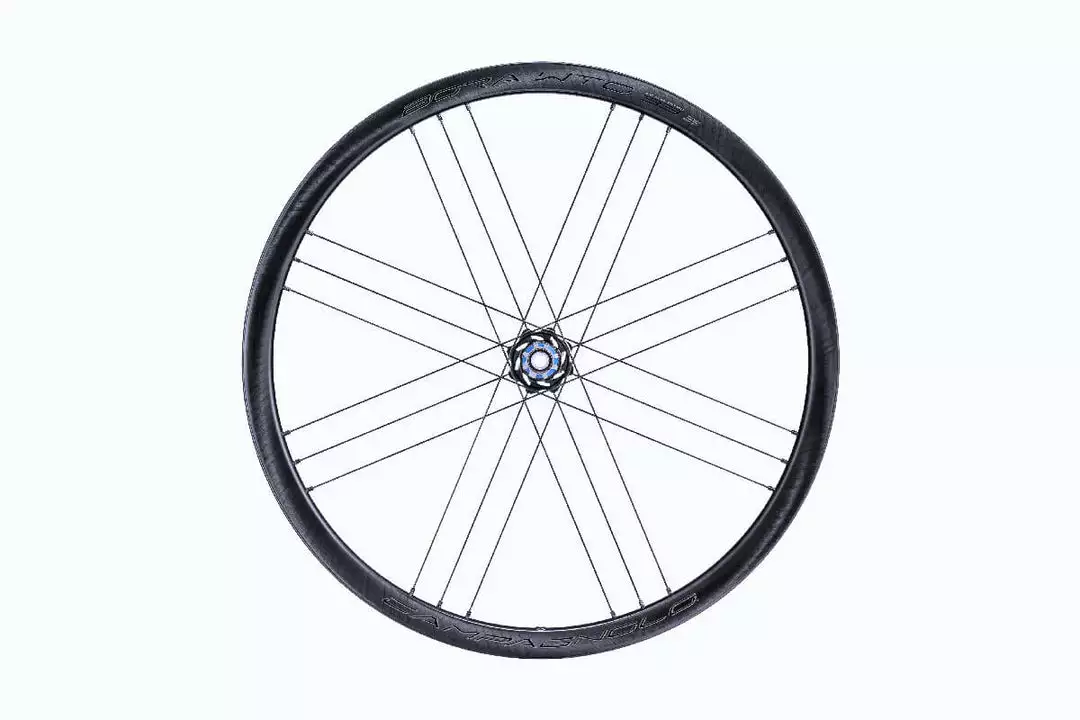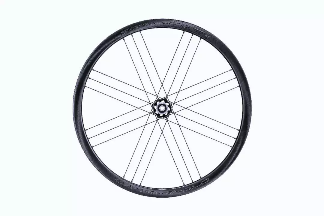 A truly multi-purpose wheel, the Campagnolo Bora WTO 33 was developed by Campagnolo using wind tunnel testing to create a wheel that is optimised to slice through the air. Ideal for rolling and flat roads, the wheel is lightweight too to enable you to head uphill without a concern. The Bora WTO 33 wheels have the same aluminium hubs and USB ceramic bearings as the rest of the WTO range. The streamlined hubs are slim in the centre and curve upwards to taller flanges; a shape said to improve aerodynamic performance. Campagnolo’s distinctive G3 spoke pattern sees the spokes laced in groups of three on the rear wheel.