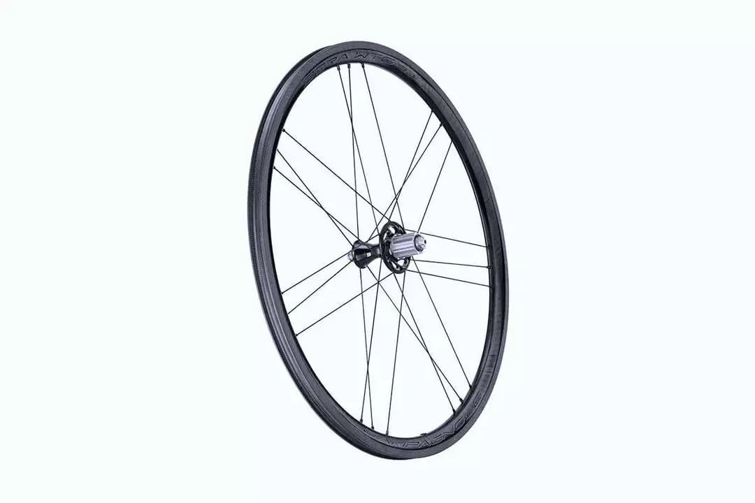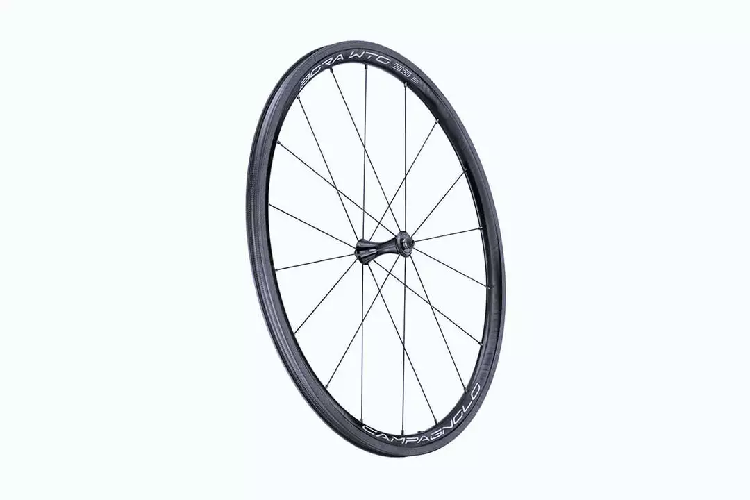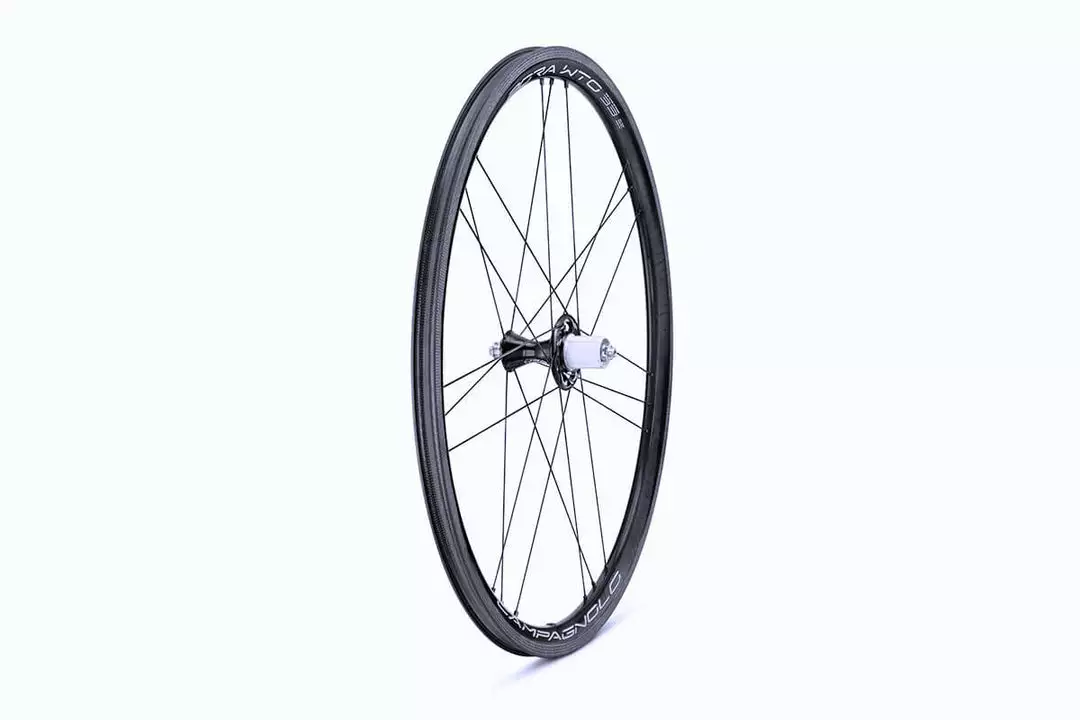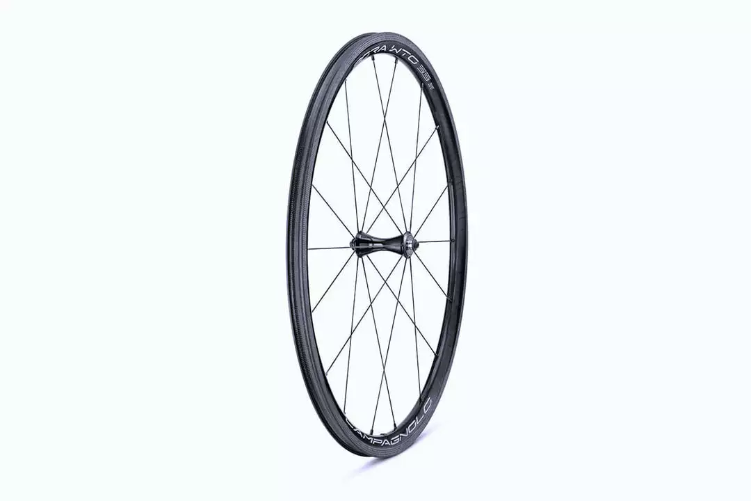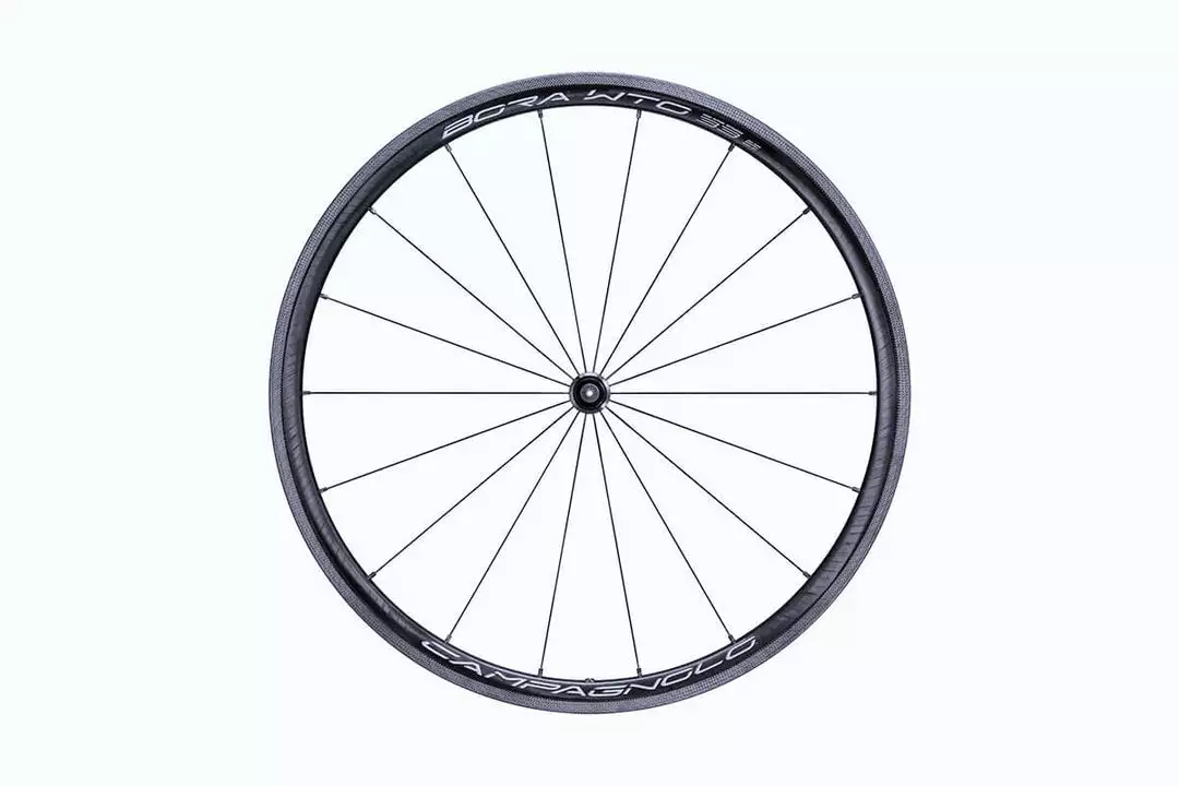 A truly multi-purpose wheel, the Campagnolo Bora WTO 33 was developed by Campagnolo using wind tunnel testing to create a wheel that is optimised to slice through the air. Ideal for rolling and flat roads, the wheel is lightweight too to enable you to head uphill without a concern. The Bora WTO 33 wheels have the same aluminium hubs and USB ceramic bearings as the rest of the WTO range. The streamlined hubs are slim in the centre and curve upwards to taller flanges; a shape said to improve aerodynamic performance. Campagnolo’s distinctive G3 spoke pattern sees the spokes laced in groups of three on the rear wheel.