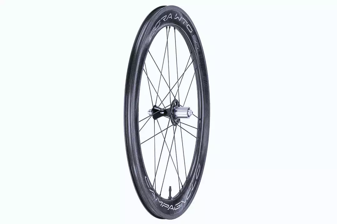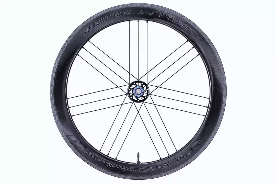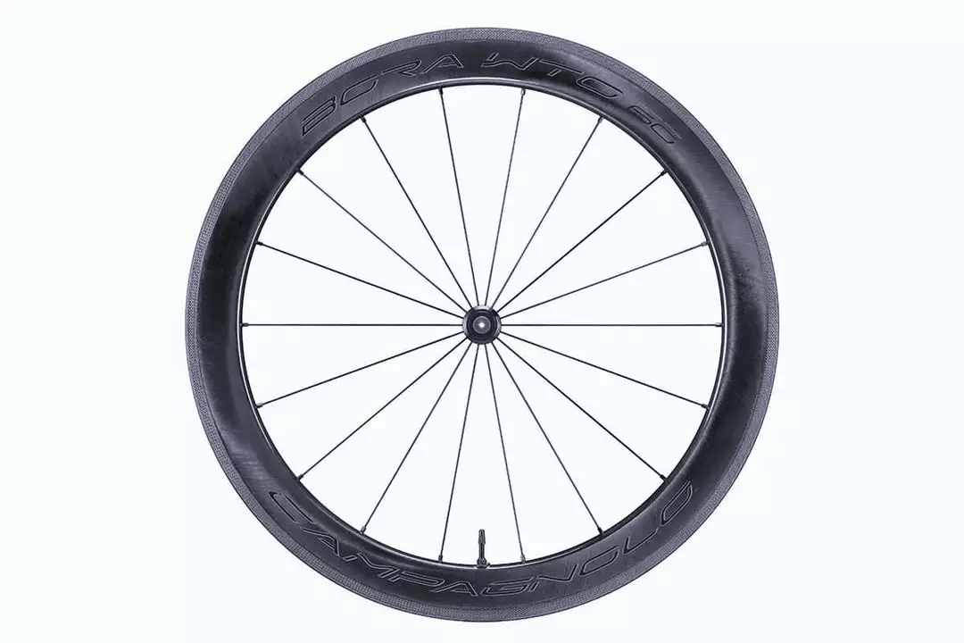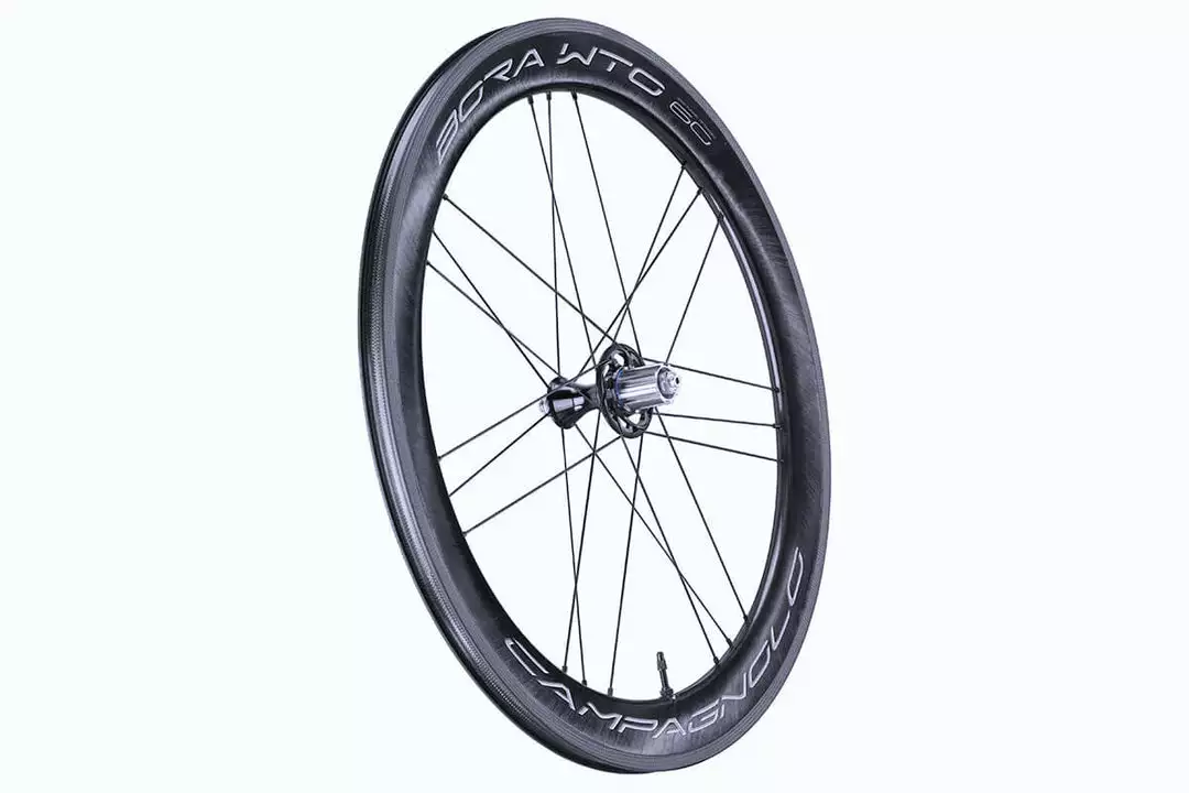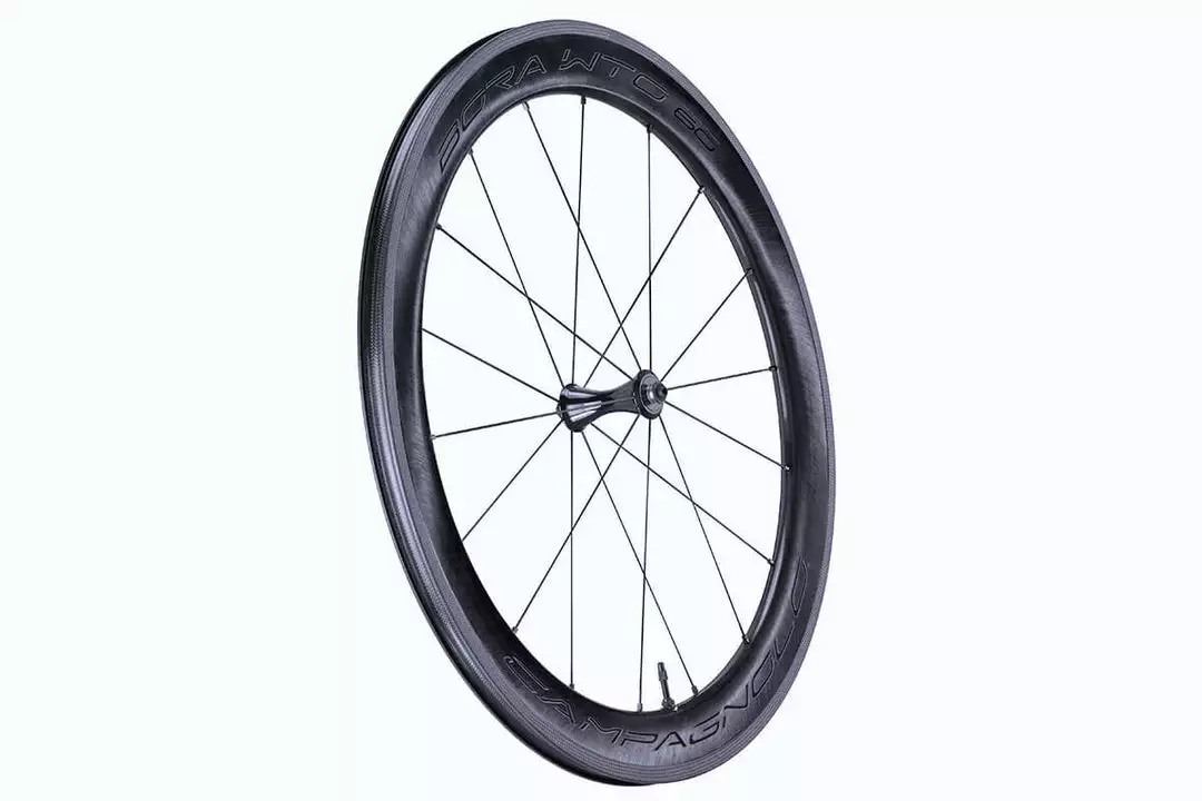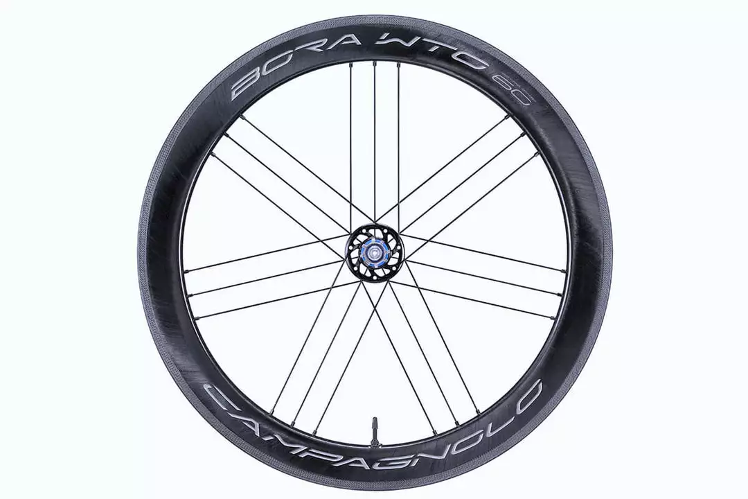 Tubeless ready carbon wheelset for performance riding. Campagnolo Bora WTO wheelset features 60mm deep rim profile which was optimised using wind tunnel testing. The testing helped Campagnolo create their most aerodynamic wheelset to date.