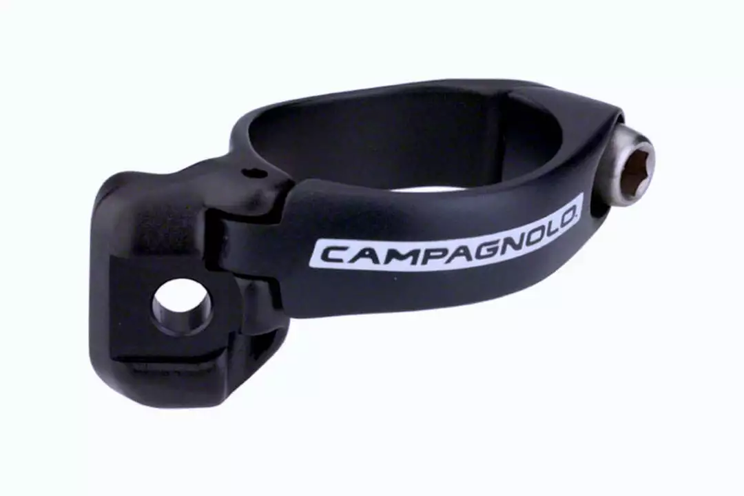 The Campagnolo Front Derailleur Clamp allows you to fit a braze-on front derailleur to a frame that requires a band-on. Fully EPS compatible.