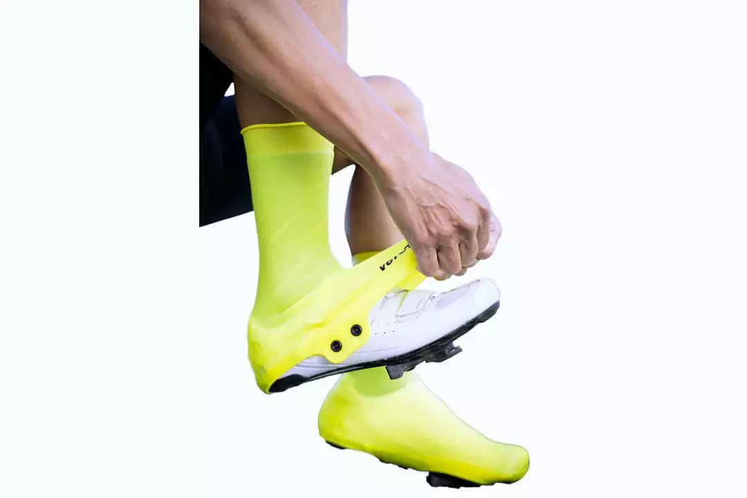 Introducing the veloToze Silicone Cycling Shoe Cover, designed to keep your feet warm and dry in cold, wet weather. Waterproof, windproof silicone protects your feet and cycling shoes from the elements. Patented design uses no zippers and fastens easily with a snap under your shoe.