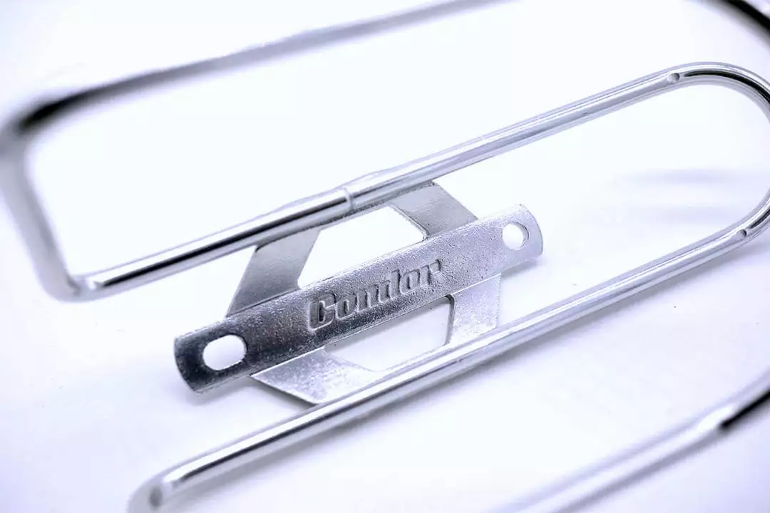 It’s funny that something so small and inexpensive can responsibly take care of the most important thing you bring on your ride: water. The Condor Alloy Bottle Cage is small, lightweight, and inexpensive. Available in black or silver, it will suit everything from town bikes to tourers, single speeds to speedsters.
