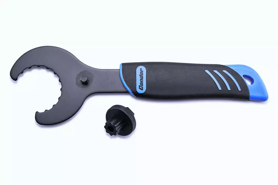 An updated version of our tool for fitting and removing Shimano Hollowtech II bottom brackets. The tool features a rubberised handle that makes it easy to grip and apply force to parts that show show resistance from being removed from the frame. Essential tool for a home mechanic.