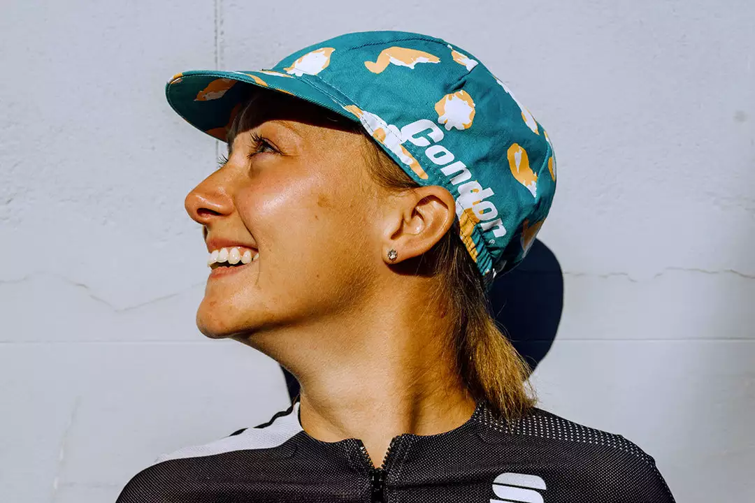 A reboot of our popular Condor Cats Cap, the Ginger Cats Cap is covered front-to-back in ginger cat characters. Featuring an elasticated band for snug fit and made from cotton, team yours with a black jersey and helmet and let the print do its thing.