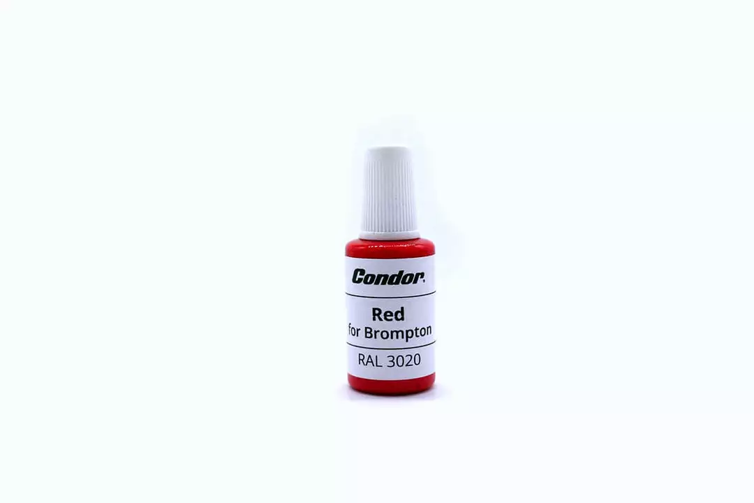 Condor Touch Up Paint for Brompton has been specially formulated for Brompton colours. Featuring an integrated brush, it is easy to repair chipped or scuffed paint. Our touch up paint can be applied without a primer and dries in 2 hours.