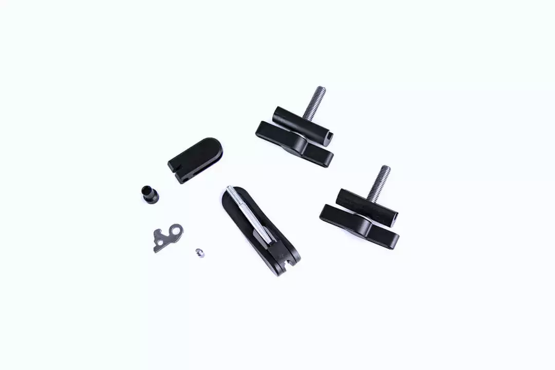 The 6-piece machined aluminium touchpoint set is an ergonomic upgrade for your Brompton. Hinges, levers and saddle quick release, feel the difference with smooth black anodised aluminium parts that move with minimal friction. First seen on the Brompton CHPT3 V2 and now available across all Brompton models.
