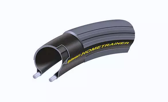Indoor specific folding tyre tyre for turbo trainers and rollers, now in black and with a more supple 180 tpi casing for an even longer lifespan. Thanks to its special cold-running compound, the Hometrainer doesn’t experience the heat build up of a road tyre, nor does it suffer the tread seperation that the road tyre is prone to under the special loads occuring when cycling and braking on the rollers revolving drums. Noise levels produced by the tyre rolling on the drum of a turbo trainer are also reduced when using this tyre in comparison to a road tyre.