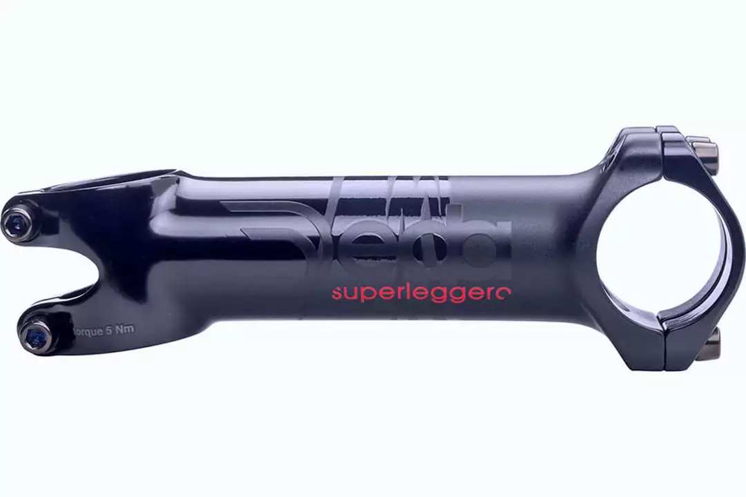 The lightest production stem. Alloy 7050 3D forged aluminium stem with titanium screws, available in black and black on black. Weight below 100 grams.
