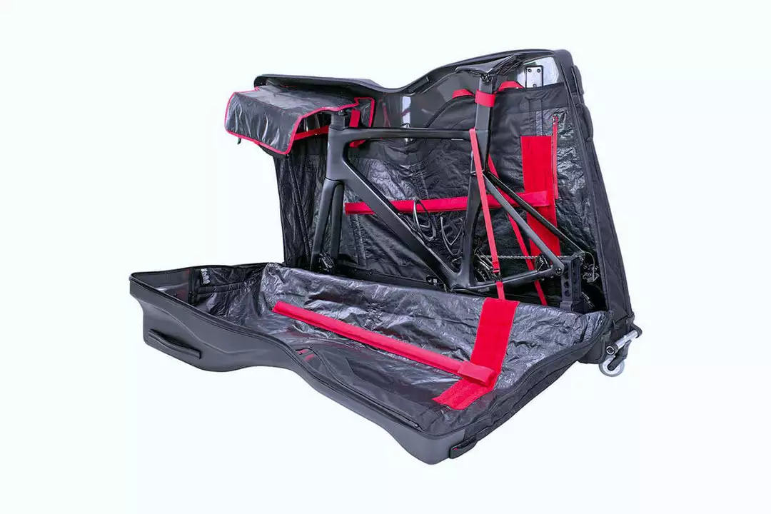 Revolutionary hybrid road and triathlon bike travel bag for very safe and convenient bike transportation.