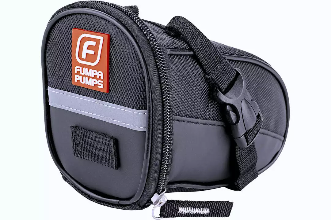 The saddle bag is sleek and of superior quality. It’s big enough to carry your Fumpa or miniFumpa, plus a spare tube and two tyre levers. Aerodynamic styling with traditional strap mount.