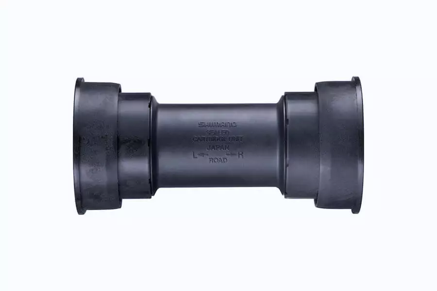 Complete press-fit bottom bracket assembly for Shimano HollowTech II road cranks. The cups are made from fibre reinforced polymer material which reduces the risk of frame noise and damage.