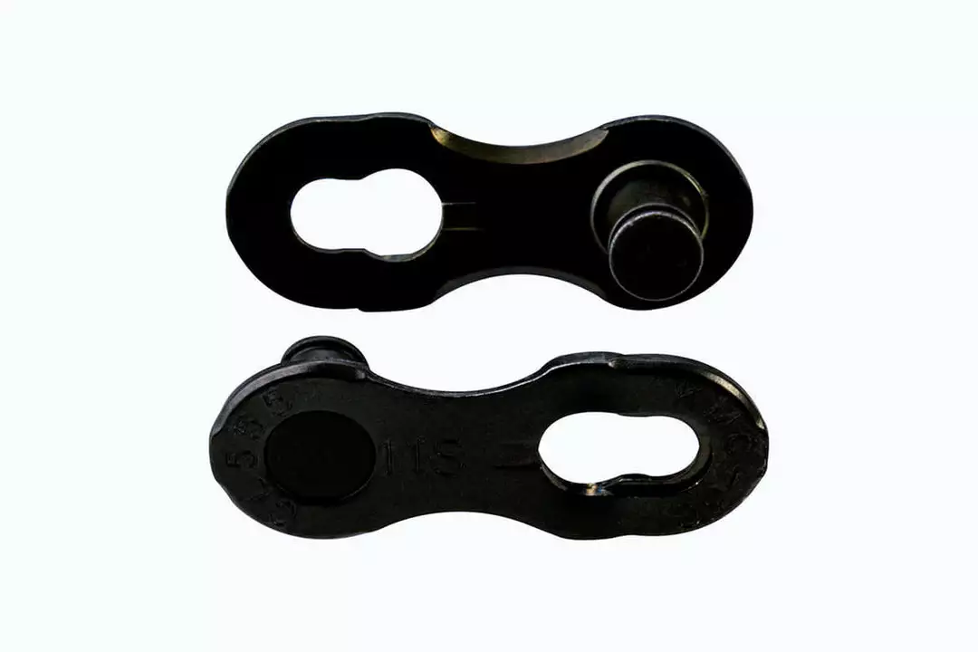 The KMC MissingLink for 11-speed is non-reusable and suitable for KMC, Campagnolo, Shimano, and SRAM 11-speed chains.