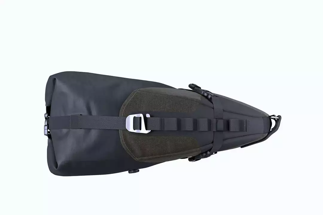 Made for Gravel & Bikepacking and Adventure Cycling, the Scape Seatpost Bag is a saddle pack designed as a holster attached to the saddle and seatpost made to hold its own waterproof dry sack.