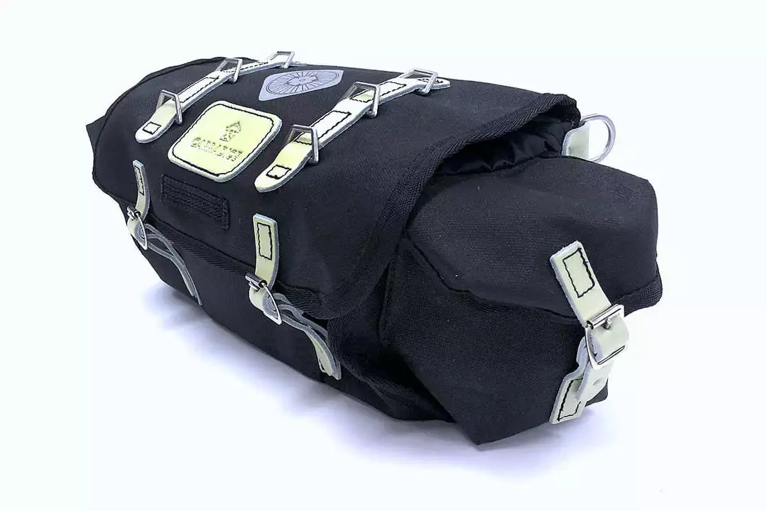 Handmade in the UK using high quality materials6 metal D ring strapping points on lid for fixing a cape or jacket2 handy pockets for organising kit3M Reflector and light anchorAvailable in 2 coloursLeather protectors on corners to protect from abrasion etc. |
