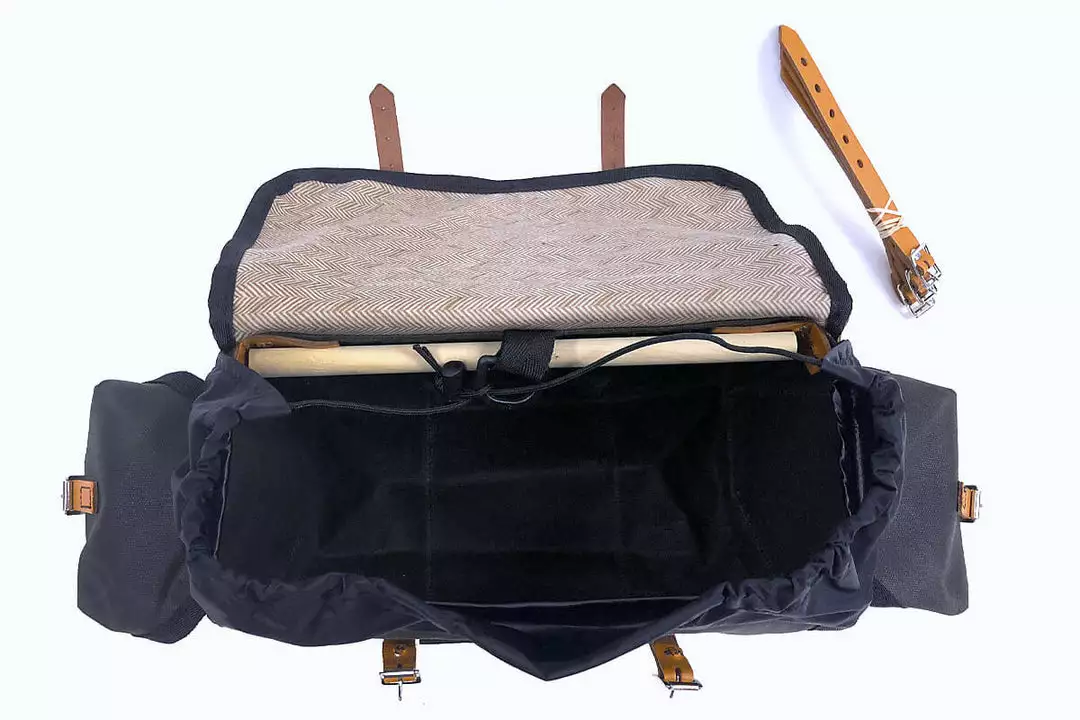 The Barley bag is constructed of a 100% waterproof 18oz waxed cotton duck and hand made in the UK using high quality materials and features 6 metal D ring strapping points on lid for fixing a cape or jacket and 2 handy pockets for organising kit.