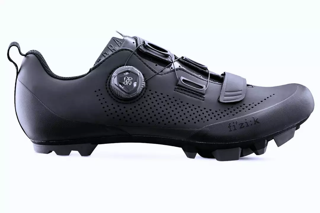 Its Laser Perforated Microtex upper and lightweight, breathable inner mesh provide flexible support and cooling while the thicker tongue material provides vital trail impact protection. The Composite Carbon Fiber vented outsole and fi’zi:k Cycling Insole combine to give support, comfort and tremendous power transfer. It has light, tough woven tape heel loops for carrying and storage.