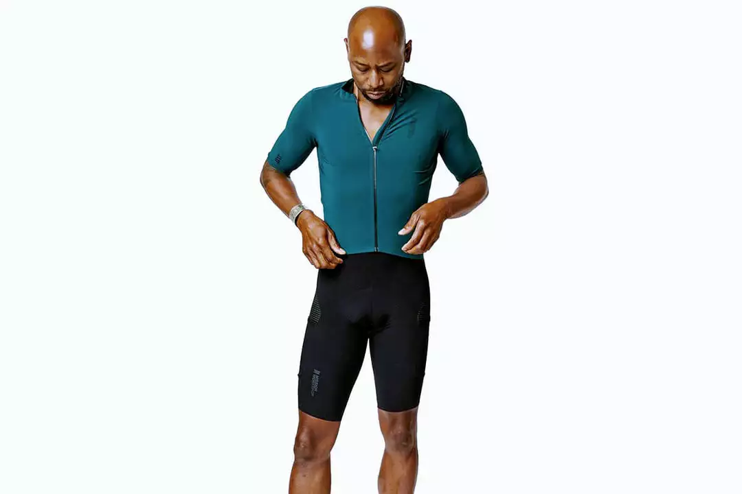 Details include a longer cut back panel for coverage when in the drops, a low collar that won’t constrict and a sweatband along the back of the neck.
