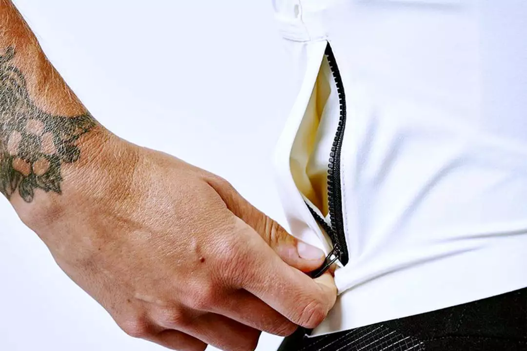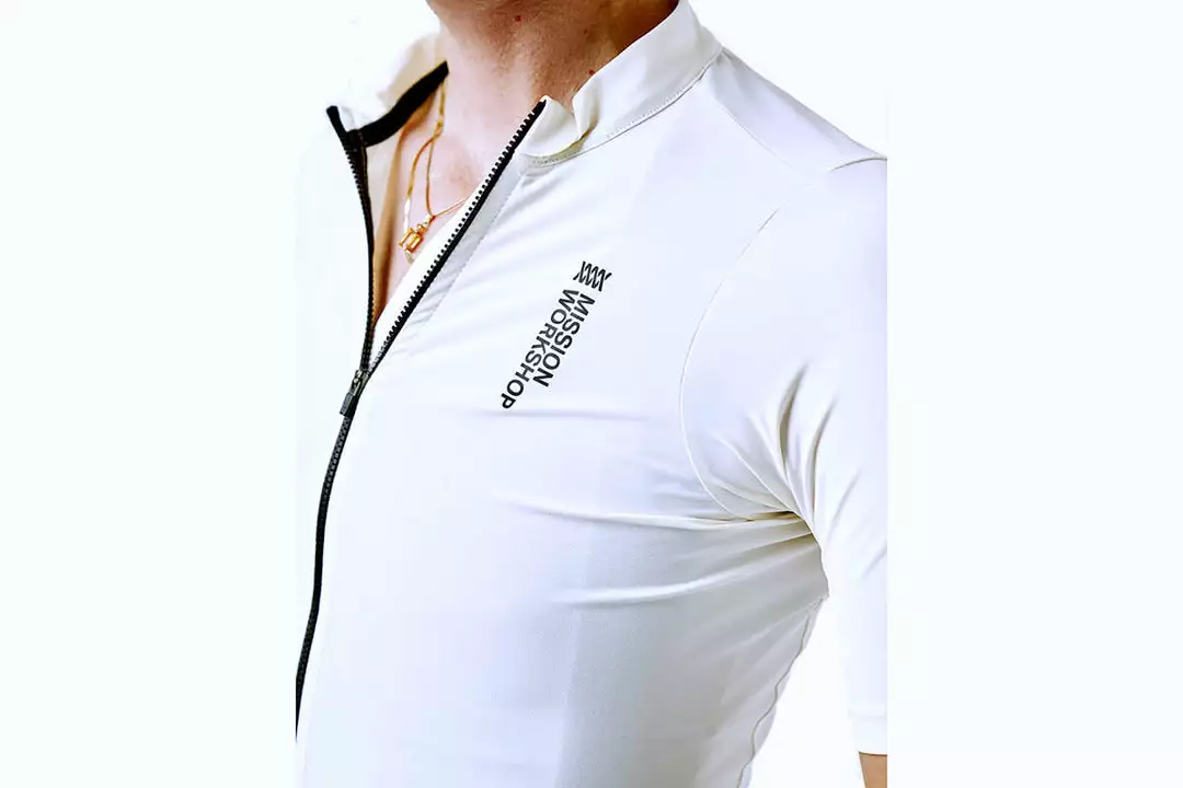 Details include a longer cut back panel for coverage when in the drops, a low collar that won’t constrict and a sweatband along the back of the neck.