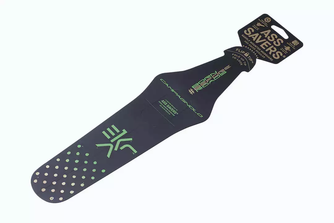 The new Ass Saver mudguard is much simpler to install than previous models, even with an undersaddle bag. The secret that turns a simple piece of plastic into an excellent mudguard lies in how you fold it before use. All the fold lines have been engineered carefully to allow the blocking mechanism and self-centering to work by fully exploiting the elastic load and resistance of the materials.