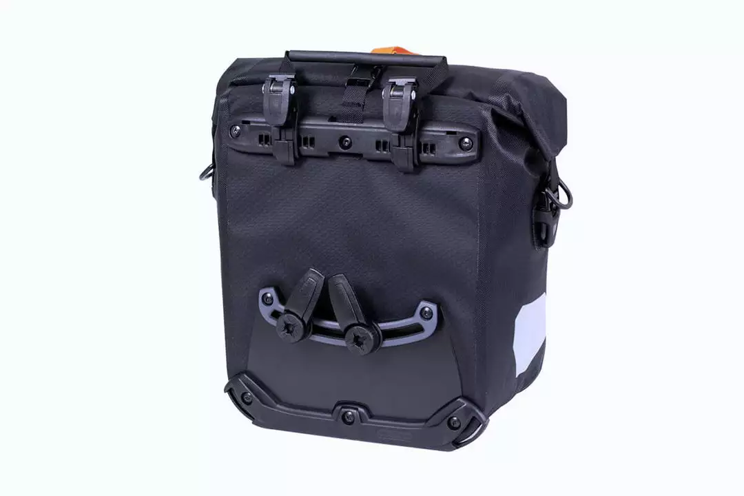 Ideal for multiday tours and self-supported races, the ORTLIEB Gravel-Pack duo offers you a combined payload of 25 liters for additional gear such as mess kits, food and other “luxury” items. Mounting the Pack to your lowrider bike rack allows you to maintain a low center of gravity and undiminished off-road agility despite your extra gear.