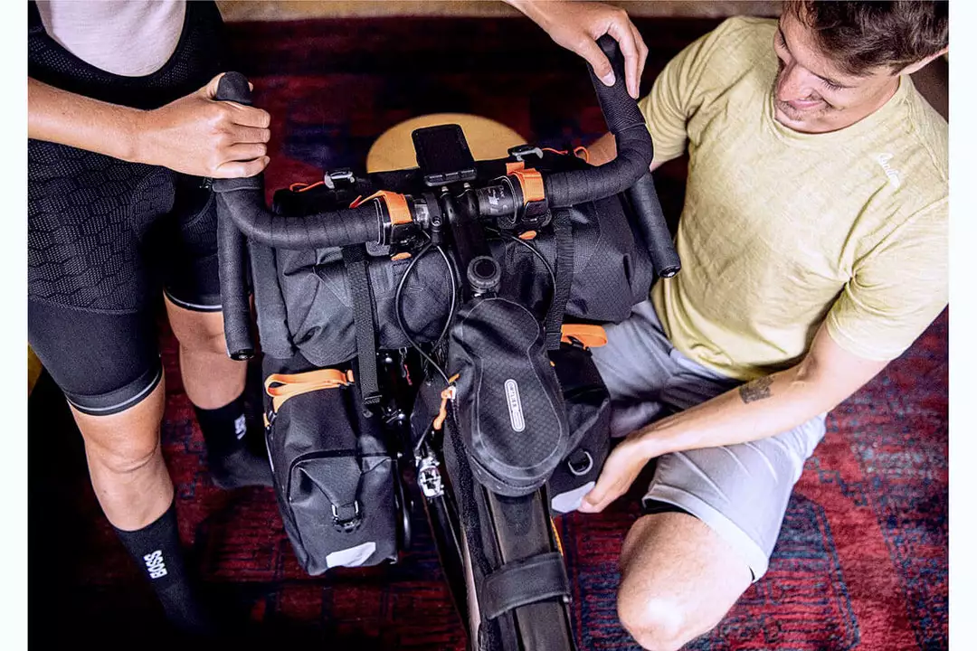 The waterproof ORTLIEB Handlebar-Pack is an indispensable item when you’re on a bikepacking tour in the great outdoors. Depending on the particular model, the Handlebar-Pack offers a payload of either 9 or 15 liters for your sleeping bag and pad. It also helps to secure a balanced distribution of gear and weight across your bike. Thanks to the roll closures at both ends, you can always gain quick access to your gear.