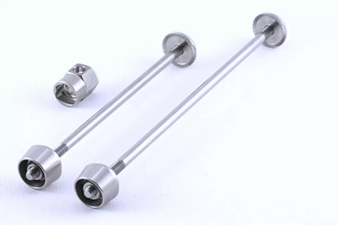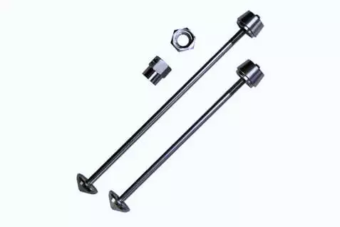 The Pitlock 2 Piece Skewer Set is a coded high security protection device that is a direct replacement for the quick release skewers on front and rear wheels. Kit locks front wheel and rear wheel. Contains front and rear skewer, 1 PIT key, code card. Pitlock is a high-quality locking system made of stainless steel, designed and made in Germany. It protects all commercially available bicycle parts with encoded security shutters and individual keys. By using more than a 1000 different codes and a special mechanical interlock technique Pitlock provides you with a safety twice as high.