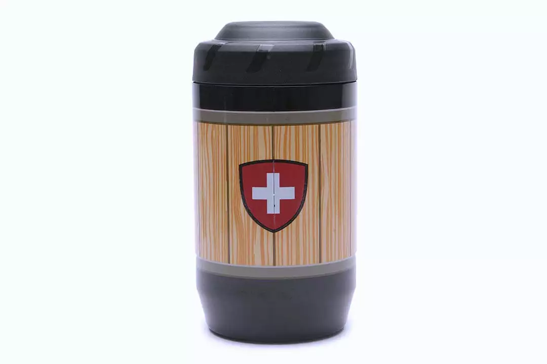 The PDW Brandy Barrel was inspied by the legendary brandy barrels carried by the St. Bernard rescue dogs of the Swiss Alps and is designed to pair with the PDW Very Good Dog Cage.