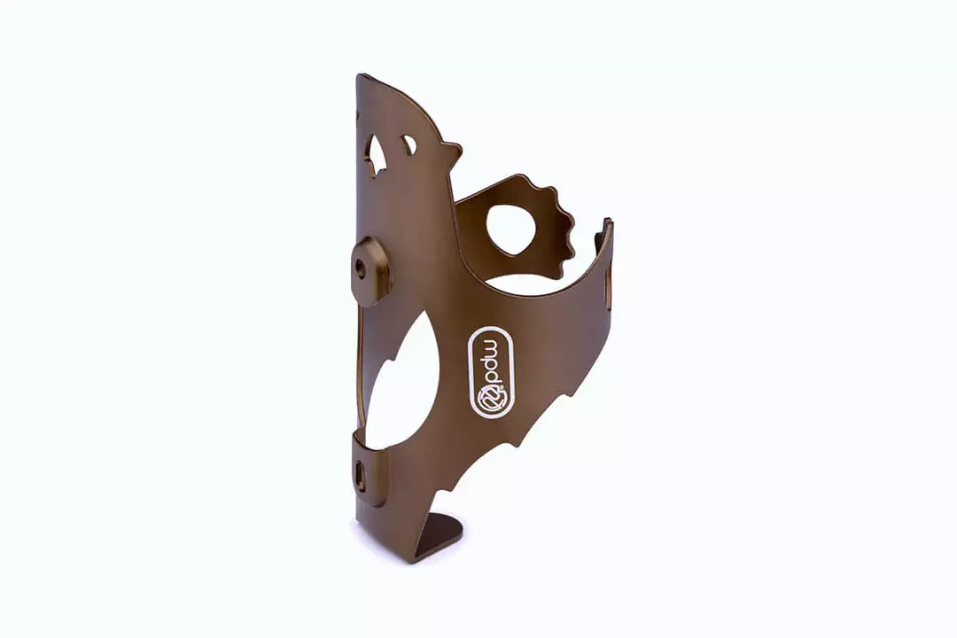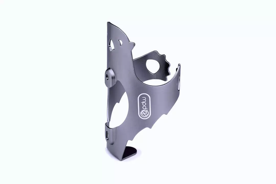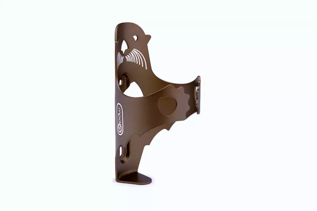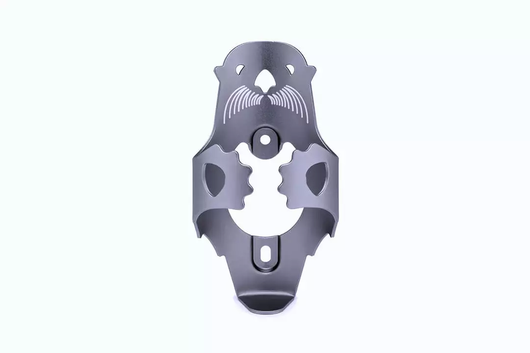 The Otter Cage is made from a single sheet of lightweight 5052 alloy. The arms of the otter cradle your water bottle nice and tight like a mama otter floating on her back with her pup.